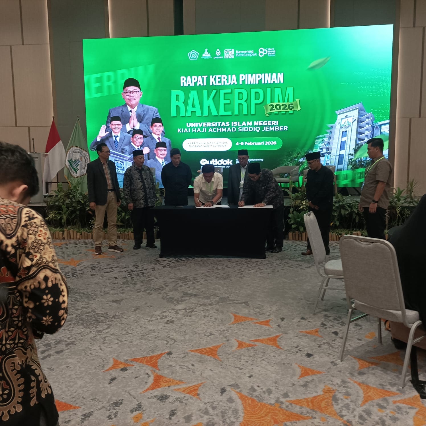 Jember — Pascasarjana Universitas Islam Negeri Kiai Haji Achmad Siddiq (UIN KHAS) Jember meneguhkan komitmennya dalam penguatan mutu dan daya saing global melalui penandatanganan Perjanjian Kinerja (Perkin) Tahun 2026. Perjanjian strategis tersebut secara resmi ditandatangani oleh Direktur Pascasarjana UIN KHAS Jember, Prof. Dr. Mashudi, M.Pd., bersama Rektor UIN KHAS Jember, Prof. Dr. H. Hepni, M.M., dengan dihadiri oleh para wakil rektor, dekan, dan senat UIN KHAS Jember dalam Rapat Kerja Pimpinan (Rakerpim) yang digelar di Harris Hotel & Conventions Bundaran Satelit Surabaya, Jumat (06/02/26).