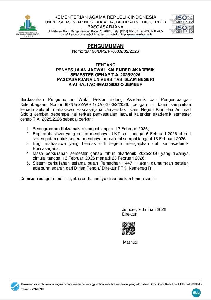PENYESUAIAN JADWAL KALENDER AKADEMIK SEMESTER GENAP T.A. 2025/2026 PASCASARJANA UNIVERSITAS ISLAM